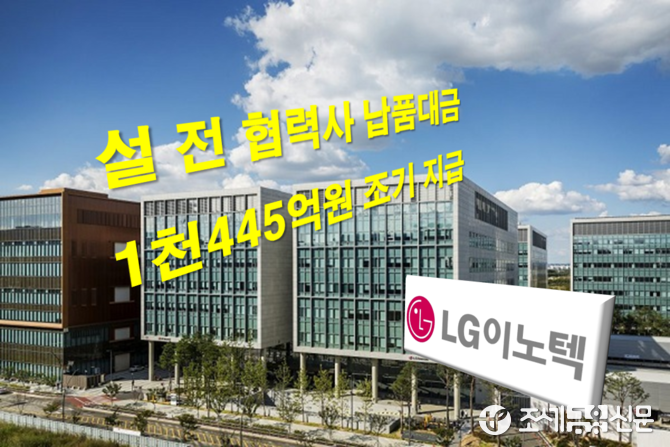 24일 LG이노텍에 따르면 지난해 말 납품 대금 1천445억원 중 721억원을 협력사에 이미 조기 지급했고, 2∼3월 지급 예정이었던 나머지 724억원도 설 연휴 전에 앞당겨 지급할 계획이다.
