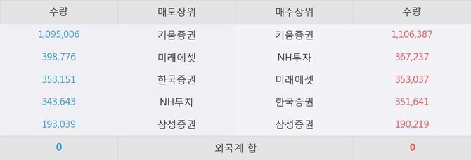 거래원 동향은 NH투자, 미래에셋, 삼성증권 등이 매수 상위 목록에 나타나고 있다.