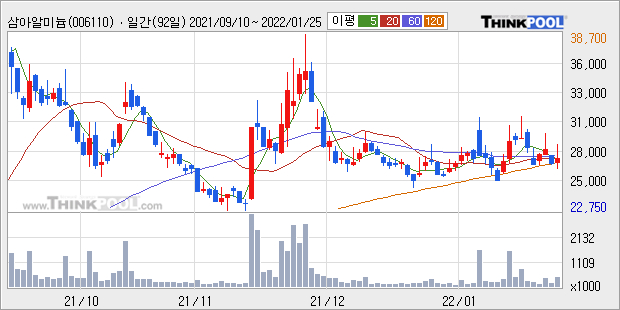삼아알미늄의 2020년 매출액은 전년대비 3.1% 늘어난 1970억원이고, 영업이익 또한 전년대비 14.6% 늘어난 74억원을 기록했다. 이 회사의 매출액 증감률과 영업이익 증감률은 각각 코스피 상위 34%, 상위 41%에 해당된다.