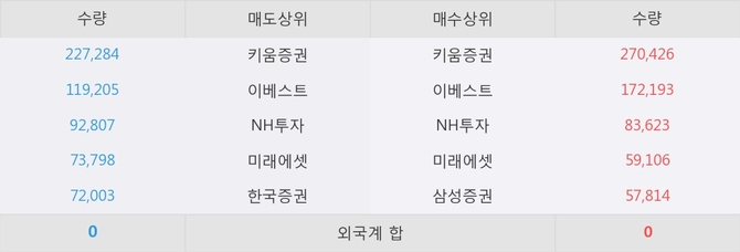 거래원 동향은 NH투자, 미래에셋, 삼성증권 등이 매수 상위 목록에 나타나고 있다.