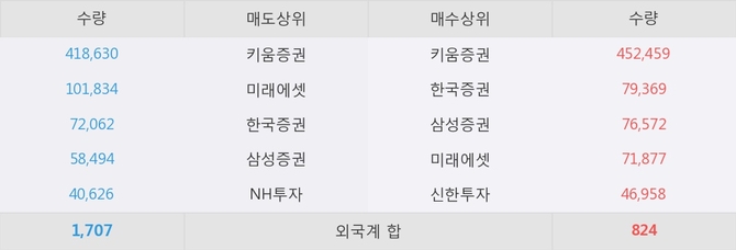 거래원 동향은 삼성증권, 미래에셋 등이 매수 상위 목록에 나타나고 있다.