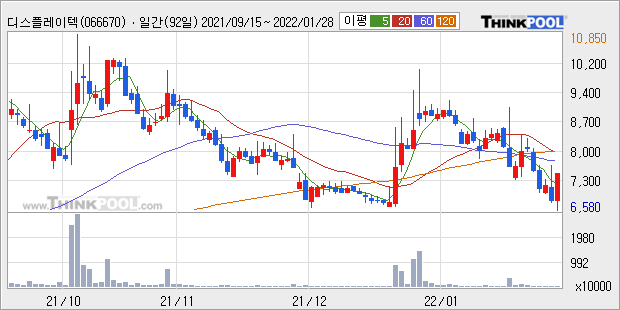 디스플레이텍은 2020년 매출액 362억원과 영업이익 39억원을 기록했다. 전년대비 매출은 -16.8%, 영업이익은 -41.2% 각각 하락했다. 이 회사의 매출액 증감률과 영업이익 증감률은 각각 코스닥 하위 1%, 하위 1%에 해당된다.