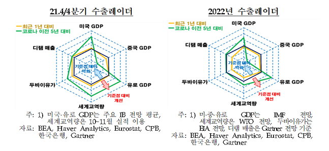 다만 최대 교역상대국인 중국의 성장세 둔화와 오미크론 확산에 따라 글로벌 경제심리 둔화는 제약 요인으로 평가된다.