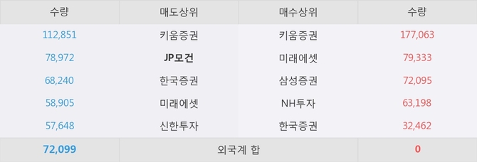 거래원 동향은 미래에셋, 삼성증권, NH투자 등이 매수 상위 목록에 나타나고 있다. 한편, 매도 창구 상위에는 JP모건이 눈에 띄고 있다.