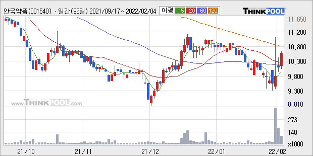 안국약품의 2020년 매출액은 전년대비 -8.0% 줄어든 1434억원이고, 영업이익은 적자전환해서 -1억원을 기록했다. 이 회사의 매출액 증감률과 영업이익 증감률은 각각 코스닥 하위 35%, 하위 18%에 해당된다.