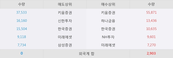 거래원 동향은 하나금융, NH투자, 미래에셋 등이 매수 상위 목록에 나타나고 있다.