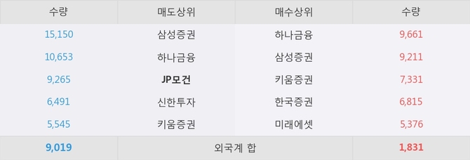 거래원 동향은 JP모건, 삼성증권, 하나금융 등이 매도 상위 목록에 나타나고 있다.