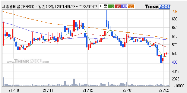 [그래프]세종텔레콤 일봉 차트