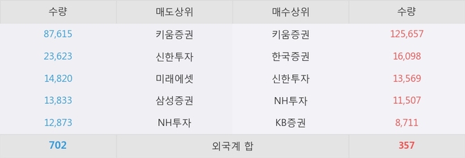 이 시각 주요 거래원은 NH투자, 키움증권, 한국증권 등이 매수 상위 창구에 자리하고 있다.