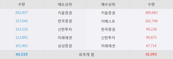 이 시각 주요 거래원은 미래에셋, 키움증권, 이베스트 등이 매수 상위 창구에 자리하고 있다.