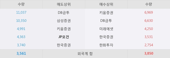 거래원 동향은 JP모건, 삼성증권이 매도 상위 목록에 나타나고 있다.