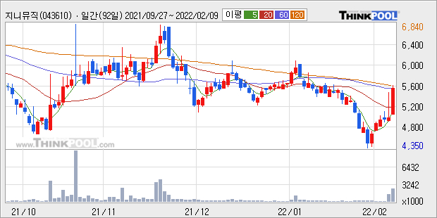 지니뮤직은 2020년 매출액 2470억원과 영업이익 115억원을 기록했다. 전년대비 매출은 7.2%, 영업이익은 41.0% 각각 상승했다. 이 회사의 매출액 증감률과 영업이익 증감률은 각각 코스닥 상위 38%, 상위 32%에 해당된다.
