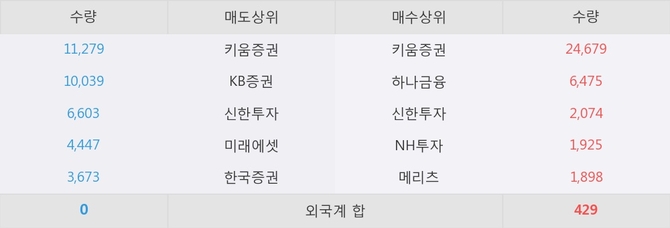 거래원 동향은 하나금융, NH투자, 메리츠 등이 매수 상위 목록에 나타나고 있다.
