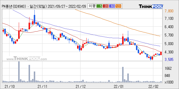 PN풍년의 2020년 매출액은 577억으로 전년대비 5.7% 상승했고, 영업이익은 6억으로 흑자전환했다. 이 회사의 매출액 증감률과 영업이익 증감률은 각각 코스닥 하위 1%, 하위 1%에 해당된다.