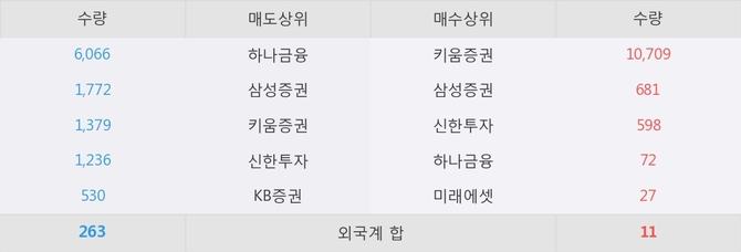 거래원 동향은 삼성증권, 하나금융, 미래에셋 등이 매수 상위 목록에 나타나고 있다.