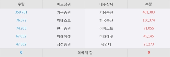 이 시각 주요 거래원은 미래에셋, 키움증권, 한국증권 등이 매수 상위 창구에 자리하고 있다.