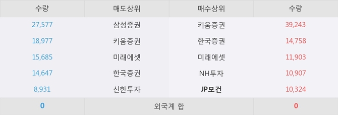 아직까지 외국계 증권사 창구를 통한 매매는 발생하지 않고 있다. 그리고 이 시간 JP모건이 매수창구상위에 올라있는 종목은 이 종목 이외에도 진에어, 민앤지 등이 있다.