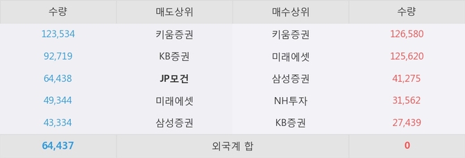 거래원 동향은 JP모건, 미래에셋, 삼성증권 등이 매도 상위 목록에 나타나고 있다.