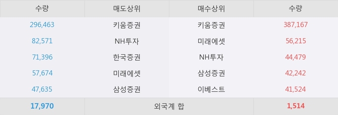 거래원 동향은 미래에셋, NH투자, 삼성증권 등이 매수 상위 목록에 나타나고 있다.