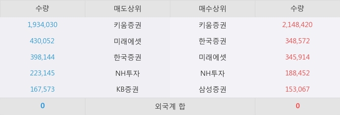 아직까지 외국계 증권사 창구를 통한 매매는 발생하지 않고 있다. 그리고 이 시간 한국증권이 매수창구상위에 올라있는 종목은 이 종목 이외에도 태림포장, 오션브릿지 등이 있다.
