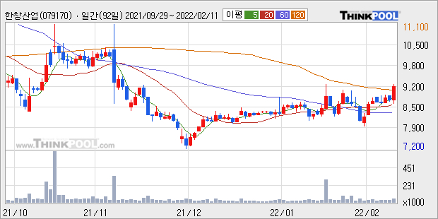 한창산업은 2020년 매출액 563억원과 영업이익 9억원을 기록했다. 전년대비 매출은 -13.9%, 영업이익은 -5.1% 각각 하락했다. 이 회사의 매출액 증감률과 영업이익 증감률은 각각 코스닥 하위 26%, 하위 45%에 해당된다.