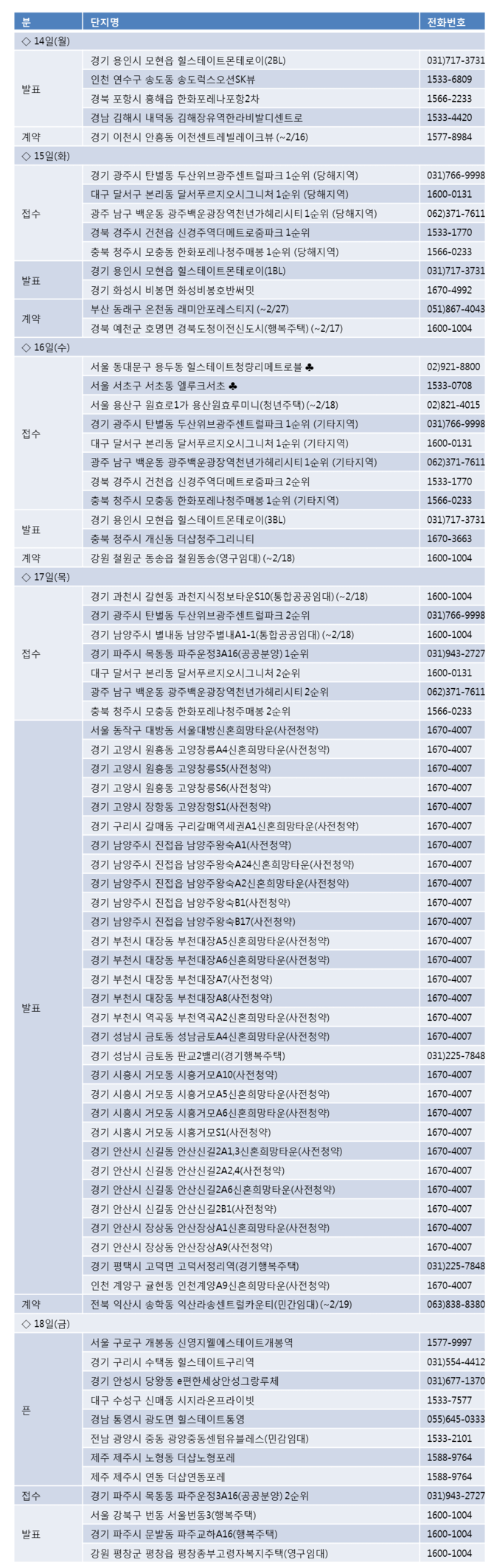 (조세금융신문=구재회 기자) 설 연휴 이후 다소 소강상태를 보였던 분양 시장이 다음 주에는 내내 활기를 띤다.