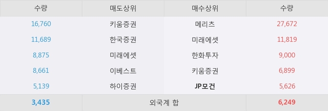 거래원 동향은 JP모건, 메리츠, 미래에셋 등이 매수 상위 목록에 나타나고 있다.