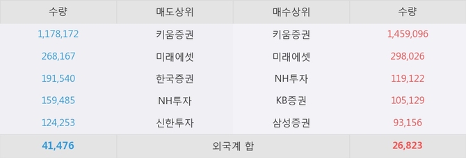 거래원 동향은 미래에셋, NH투자, 삼성증권 등이 매수 상위 목록에 나타나고 있다.
