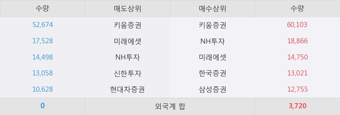 거래원 동향은 NH투자, 미래에셋, 삼성증권 등이 매수 상위 목록에 나타나고 있다.