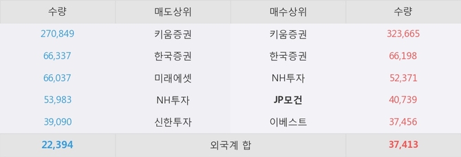 거래원 동향은 JP모건, NH투자가 매수 상위 목록에 나타나고 있다.