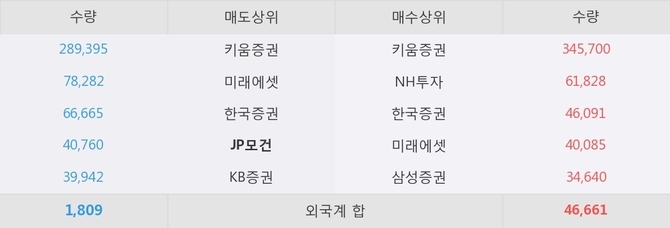 거래원 동향은 NH투자, 미래에셋, 삼성증권 등이 매수 상위 목록에 나타나고 있다. 한편, 매도 창구 상위에는 JP모건이 눈에 띄고 있다.