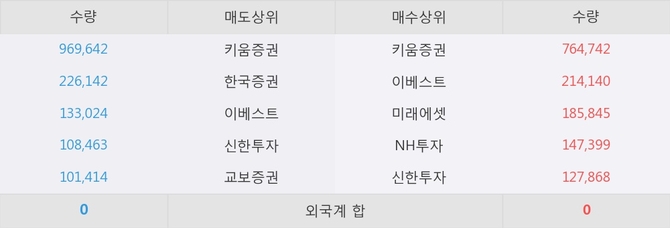 아직까지 외국계 증권사 창구를 통한 매매는 발생하지 않고 있다. 그리고 이 시간 이베스트가 매수창구상위에 올라있는 종목은 이 종목 이외에도 에이치피오, 옵티시스 등이 있다.