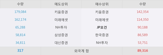 거래원 동향은 JP모건, 미래에셋, NH투자 등이 매수 상위 목록에 나타나고 있다.