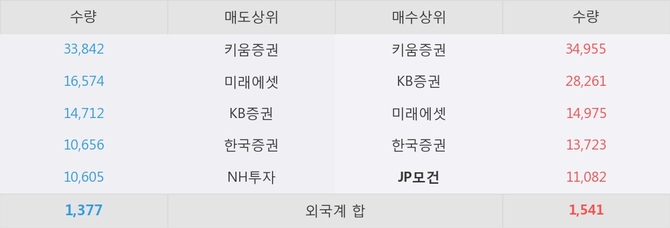 거래원 동향은 JP모건, 미래에셋이 매수 상위 목록에 나타나고 있다.