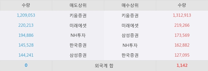거래원 동향은 미래에셋, 삼성증권, NH투자 등이 매수 상위 목록에 나타나고 있다.