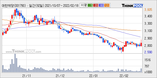 대한제당의 2020년 매출액은 1조 2144억으로 전년대비 0.8% 상승했고, 영업이익 또한 463억으로 전년대비 57.1% 상승했다. 이 회사의 매출액 증감률과 영업이익 증감률은 각각 코스피 상위 40%, 상위 24%에 해당된다.