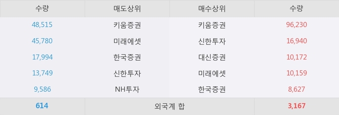 이 시각 주요 거래원은 미래에셋, 키움증권, 신한투자 등이 매수 상위 창구에 자리하고 있다.