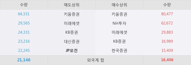 거래원 동향은 NH투자, 미래에셋 등이 매수 상위 목록에 나타나고 있다. 한편, 매도 창구 상위에는 JP모건이 눈에 띄고 있다.