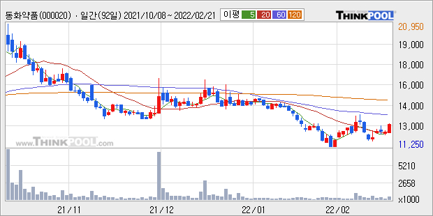 동화약품의 2020년 매출액은 전년대비 -11.4% 줄어든 2721억원이고, 영업이익은 전년대비 133.4% 늘어난 232억원을 기록했다. 이 회사의 매출액 증감률과 영업이익 증감률은 각각 코스피 하위 28%, 상위 11%에 해당된다.