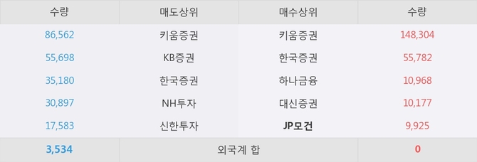 이 시간 JP모건이 매수창구상위에 올라있는 종목은 이 종목 이외에도 대한해운, 한화손해보험 등이 있다.