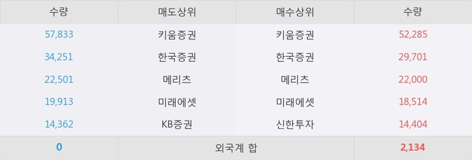 거래원 동향은 메리츠, 미래에셋 등이 매수 상위 목록에 나타나고 있다.