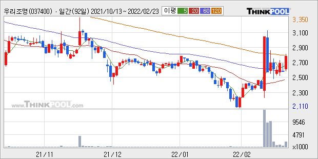우리조명의 2020년 매출액은 1조 6470억으로 전년대비 -3.0% 하락했고, 영업이익은 403억으로 전년대비 48.7% 상승했다. 이 회사의 매출액 증감률과 영업이익 증감률은 각각 코스닥 하위 43%, 상위 29%에 해당된다.