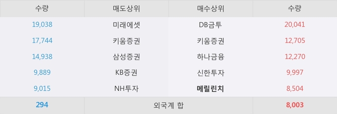 거래원 동향은 메릴린치, 하나금융이 매수 상위 목록에 나타나고 있다.