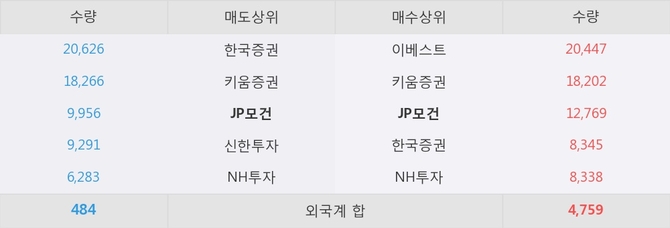거래원 동향은 JP모건, NH투자가 매수 상위 목록에 나타나고 있다. 한편, 매도 창구 상위에는 JP모건이 눈에 띄고 있다.