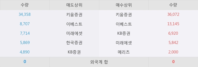 아직까지 외국계 증권사 창구를 통한 매매는 발생하지 않고 있다. 그리고 이 시간 이베스트가 매수창구상위에 올라있는 종목은 이 종목 이외에도 DSR제강, 하나 KRX BBIG K-뉴딜 ETN 등이 있다.