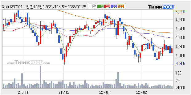 SJM의 2020년 매출액은 1387억으로 전년대비 -12.1% 하락했고, 영업이익은 68억으로 전년대비 5.3% 상승했다. 이 회사의 매출액 증감률과 영업이익 증감률은 각각 코스피 하위 27%, 상위 49%에 해당된다.