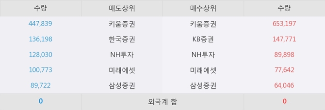 거래원 동향은 NH투자, 미래에셋, 삼성증권 등이 매수 상위 목록에 나타나고 있다.