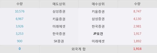 거래원 동향은 JP모건, 삼성증권, 미래에셋 등이 매수 상위 목록에 나타나고 있다.