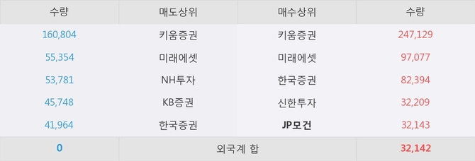 거래원 동향은 JP모건, 미래에셋이 매수 상위 목록에 나타나고 있다.