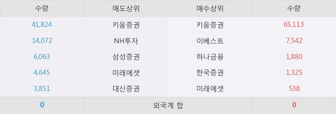 거래원 동향은 하나금융, 미래에셋 등이 매수 상위 목록에 나타나고 있다.